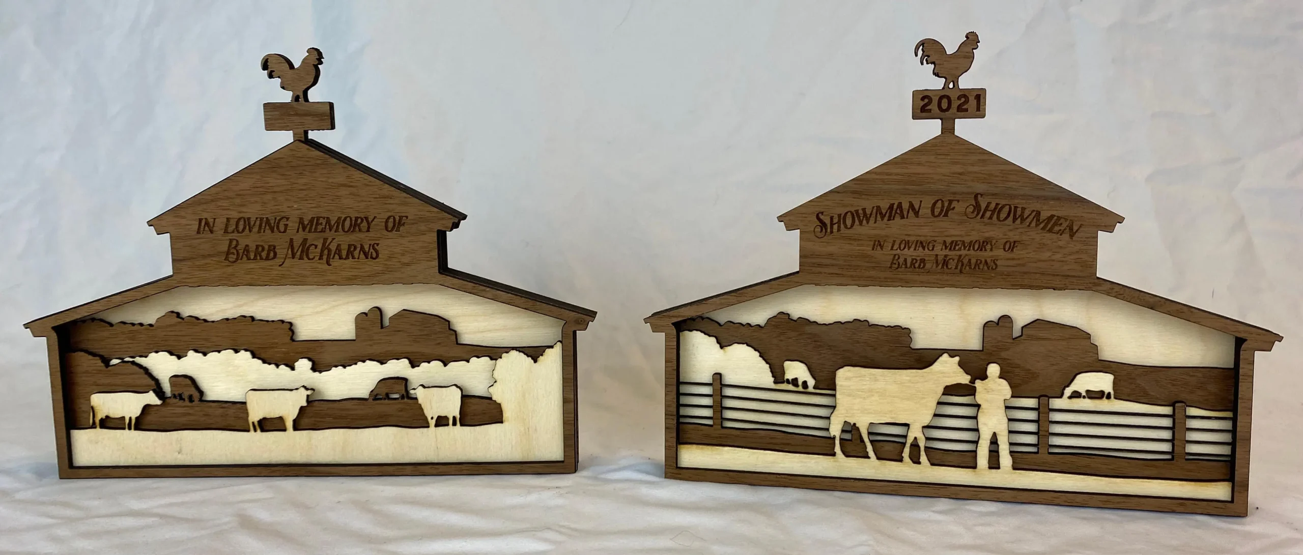 Our BarnView awards are perfect for your county or state fair champions, memorial trophies, wedding or housewarming gifts, or simply the dairy farmer who has everything. Add your custom text to the ‘roof’ area of the barn (included) to make your item even more personalized.