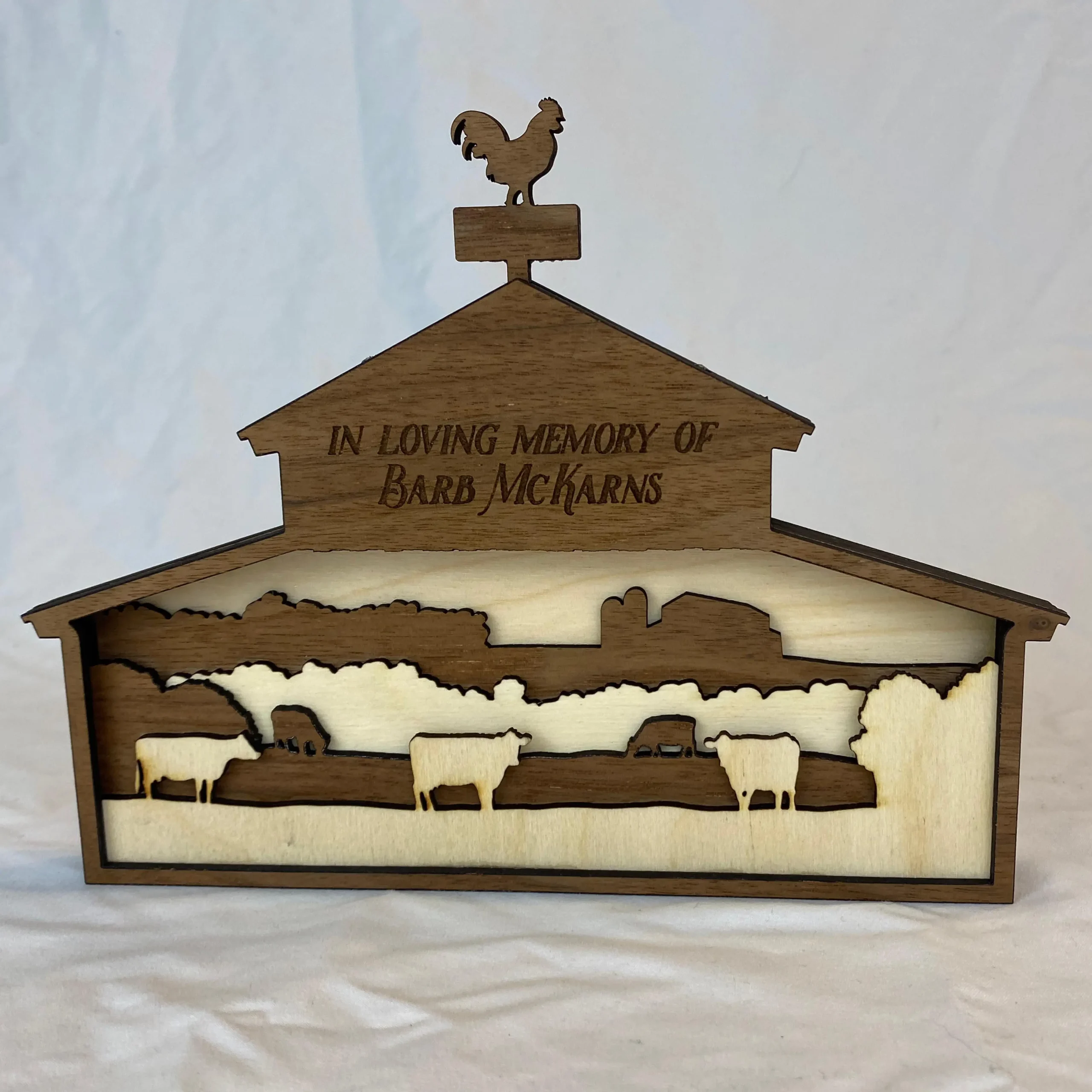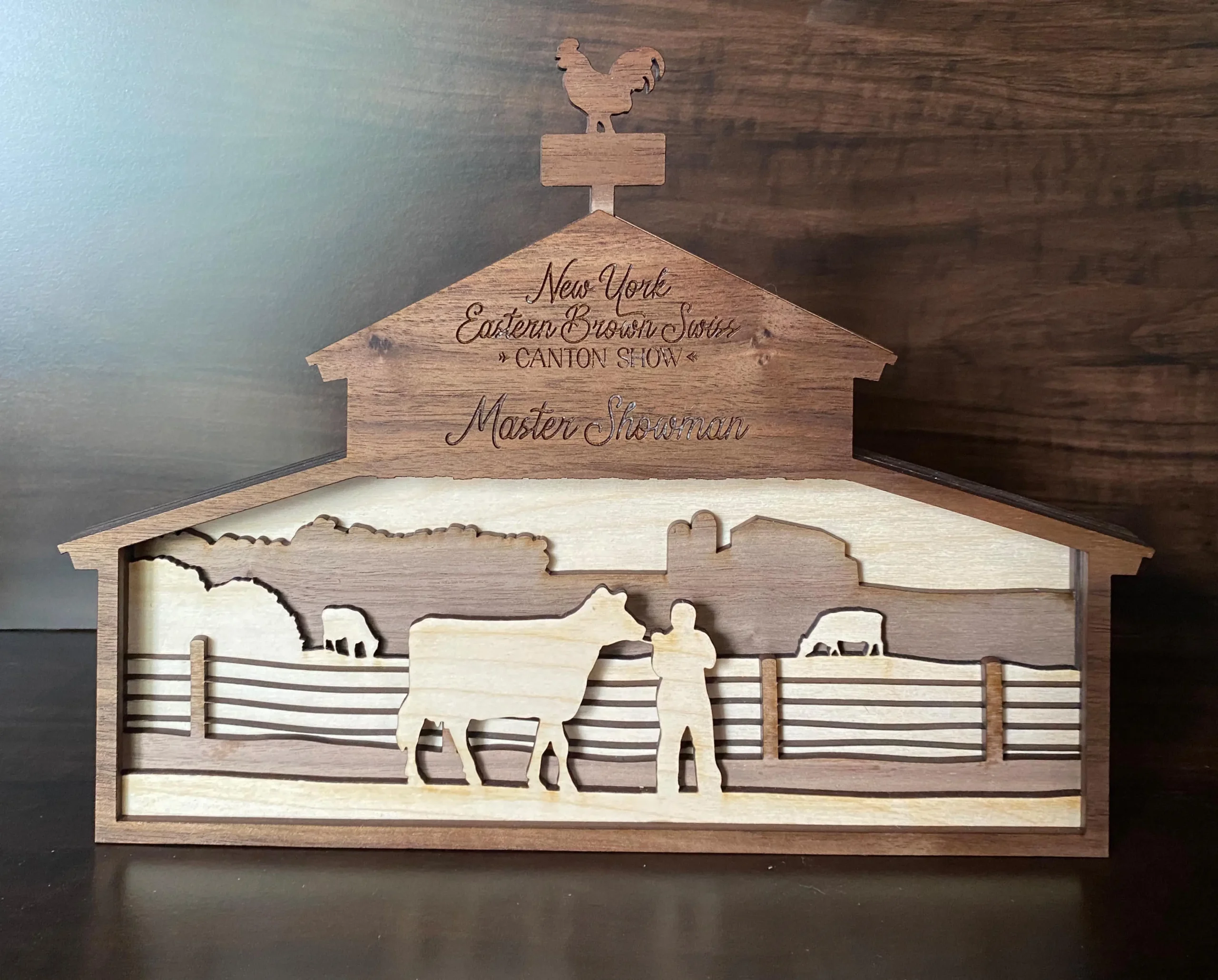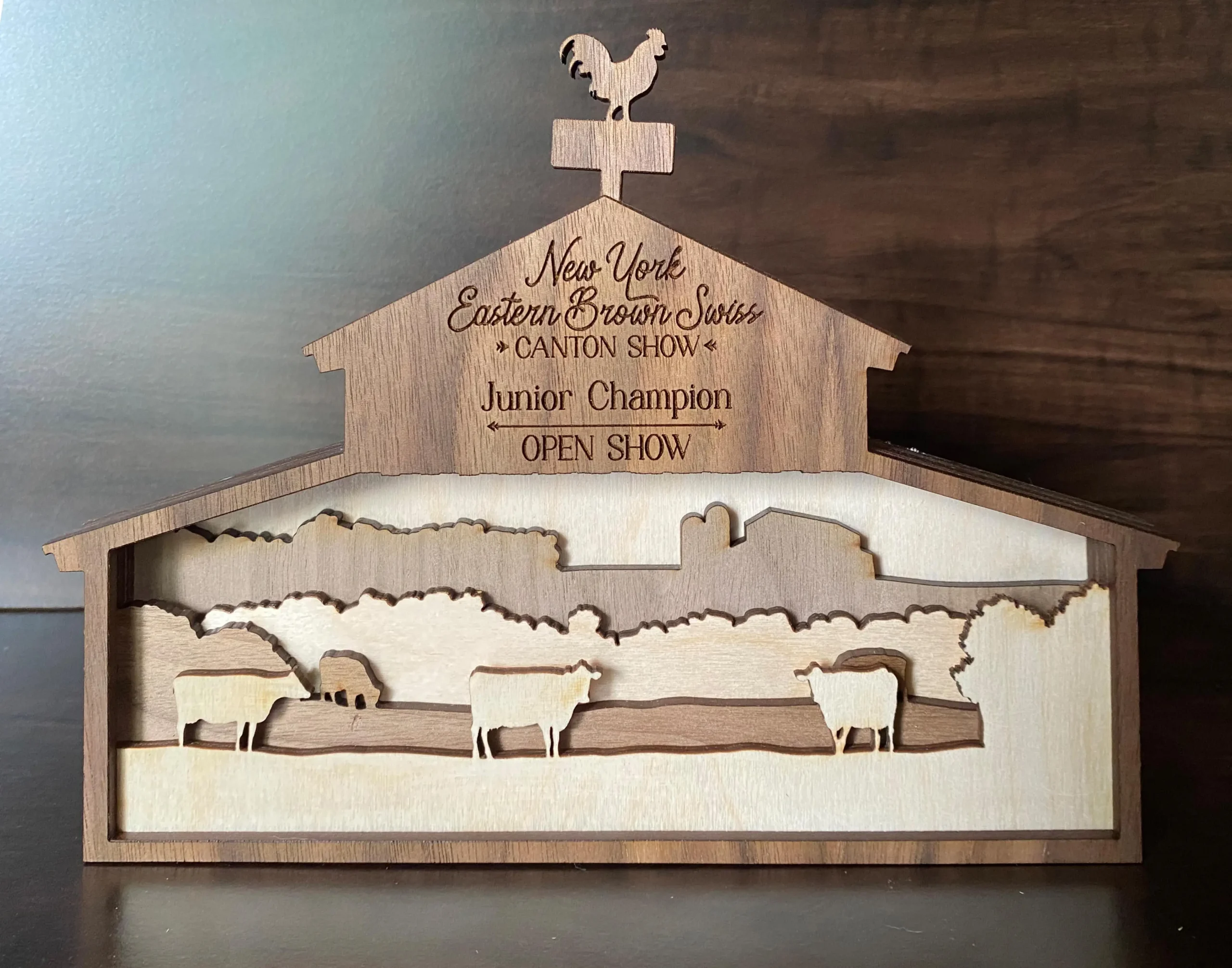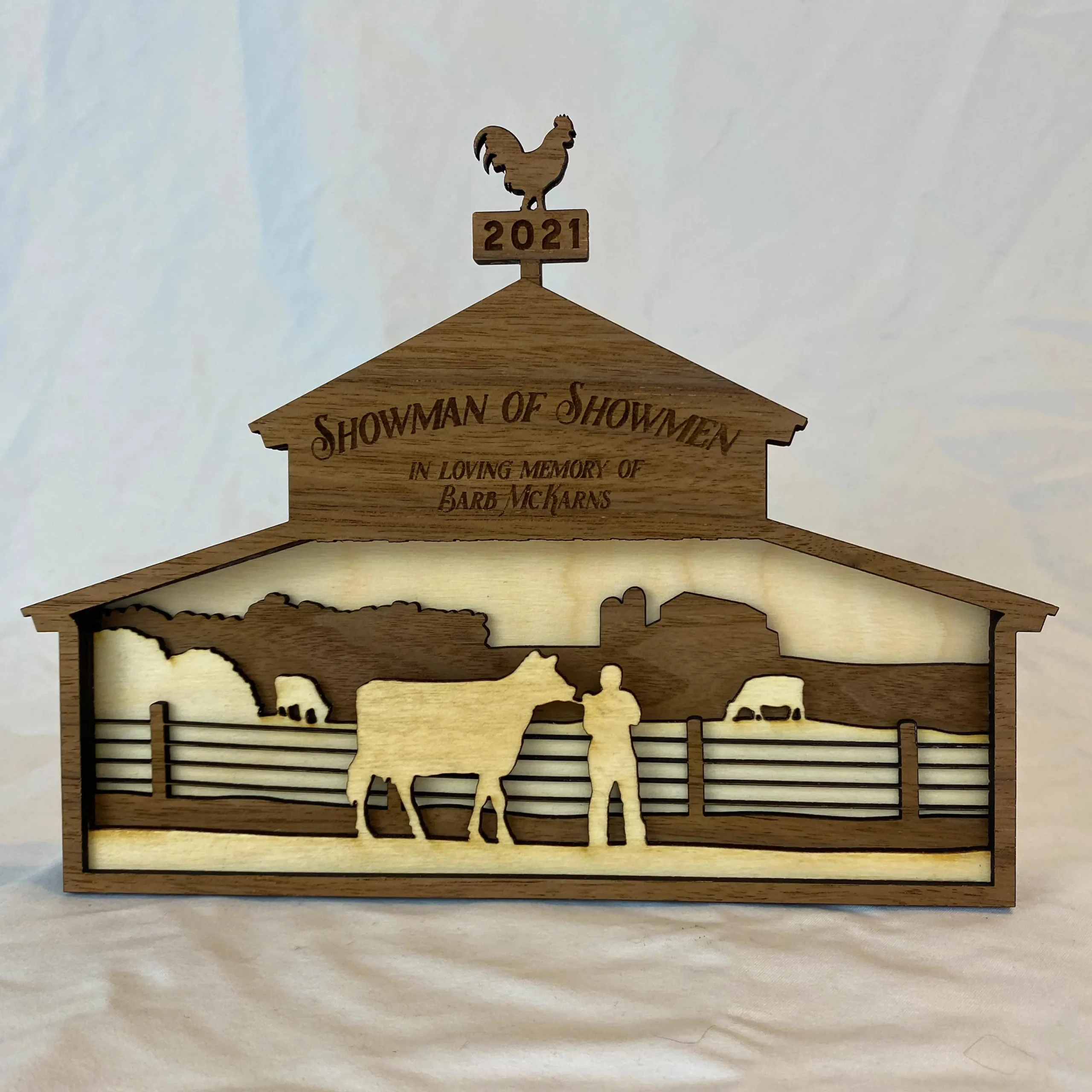 One of the first designs we ever created, our BarnView awards have proven to be a favorite year after year. Layers of walnut and birch are laser-cut and precisely assembled by hand, and the finished product can sit on a shelf or hang on the wall with the included built-in hanger.