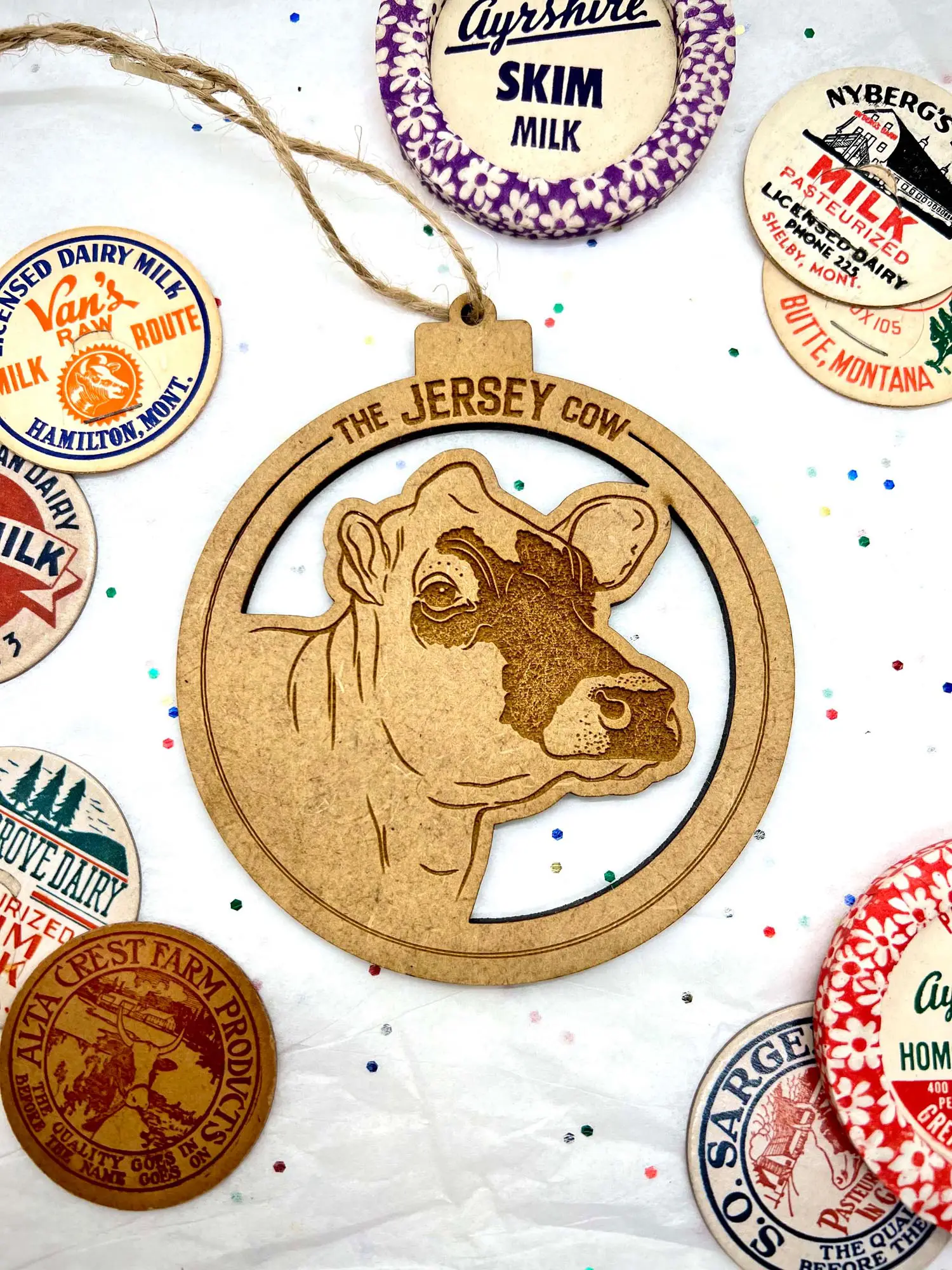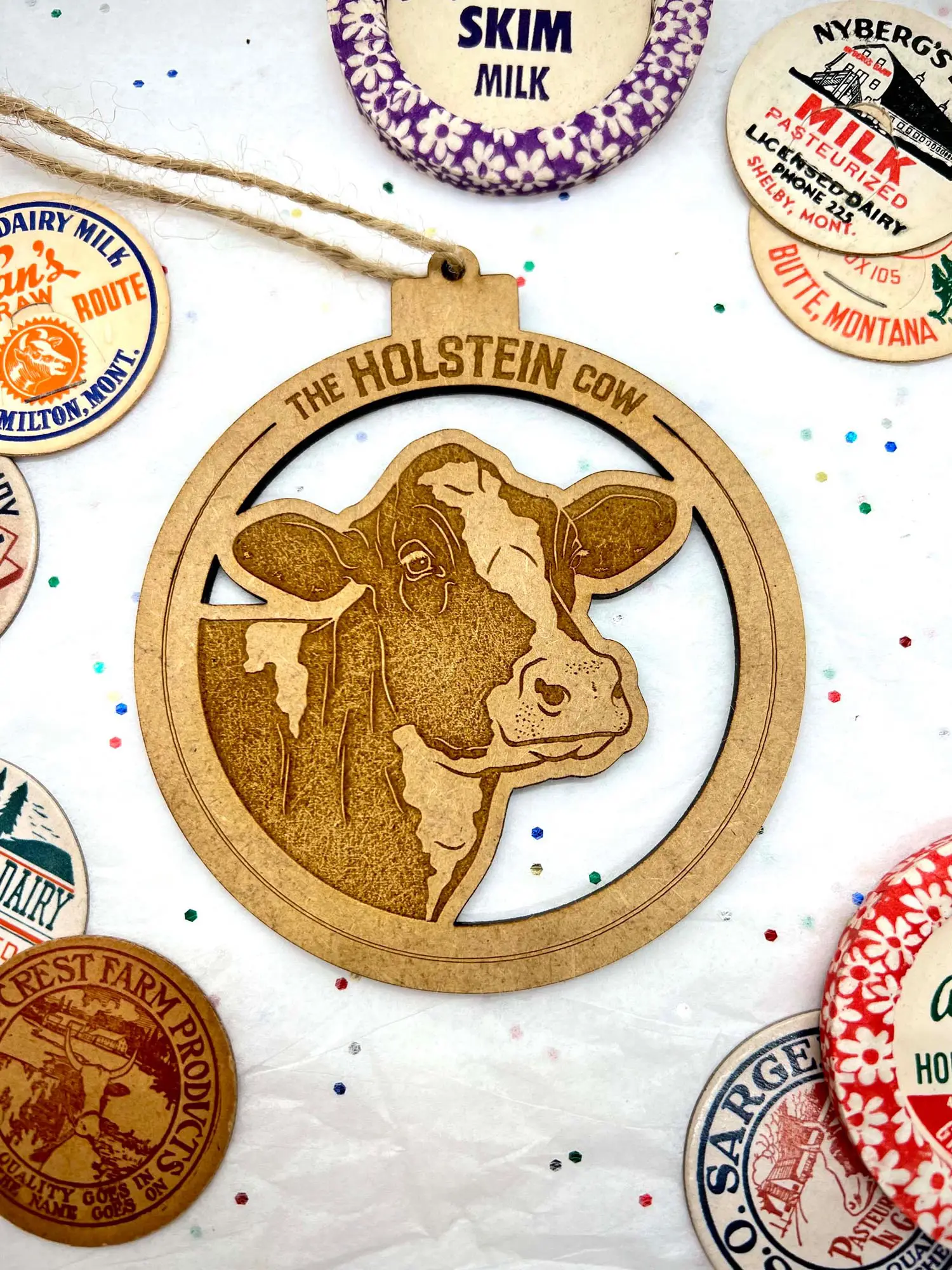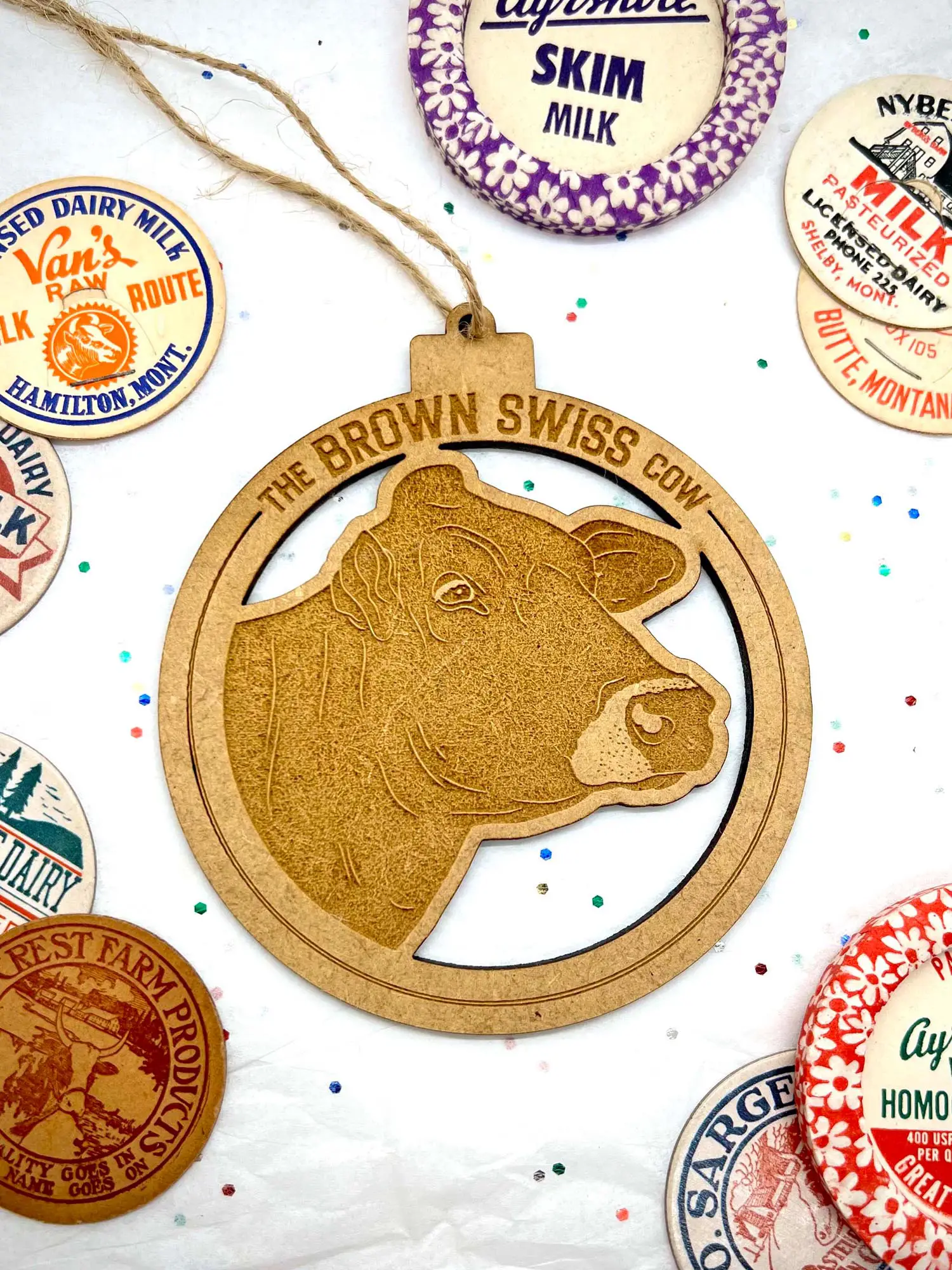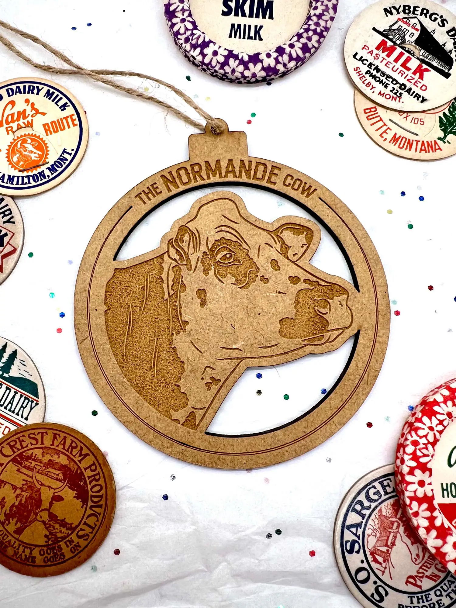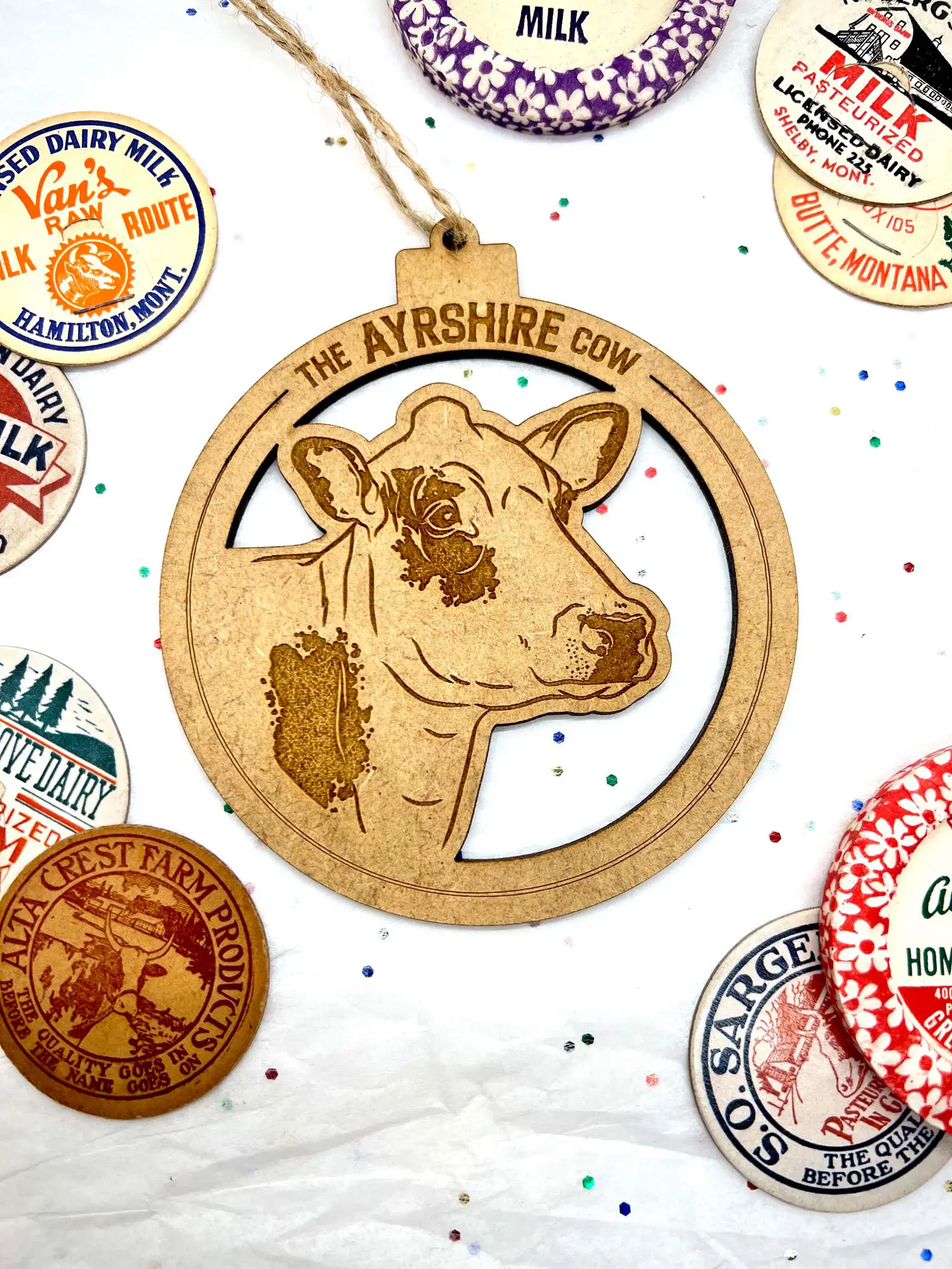 Simple, beautiful and the perfect addition to any farmhouse Christmas tree. These ornaments feature gorgeous illustrations of modern dairy breeds set in the center of an MDF cutout ‘bauble’. Sure to make any dairy farmer happy this year!