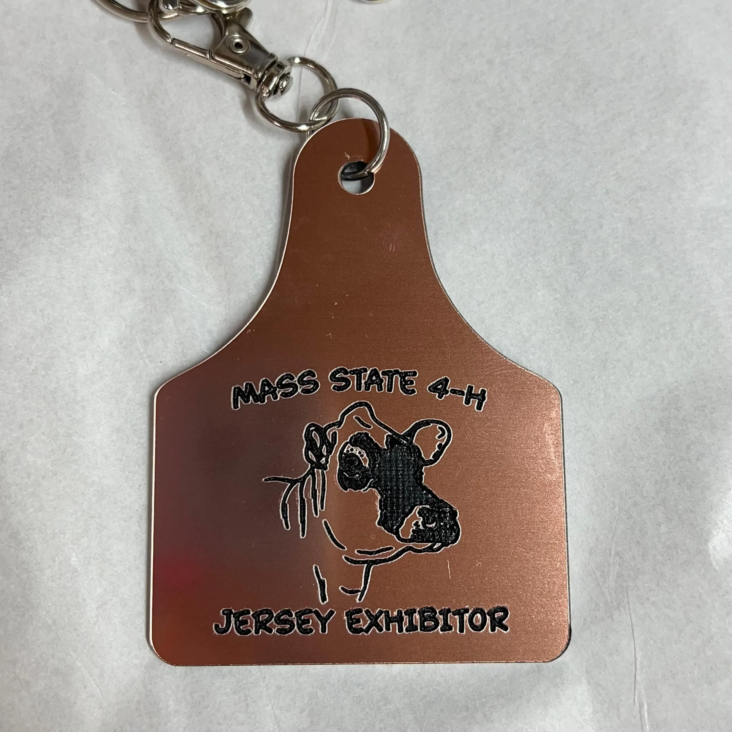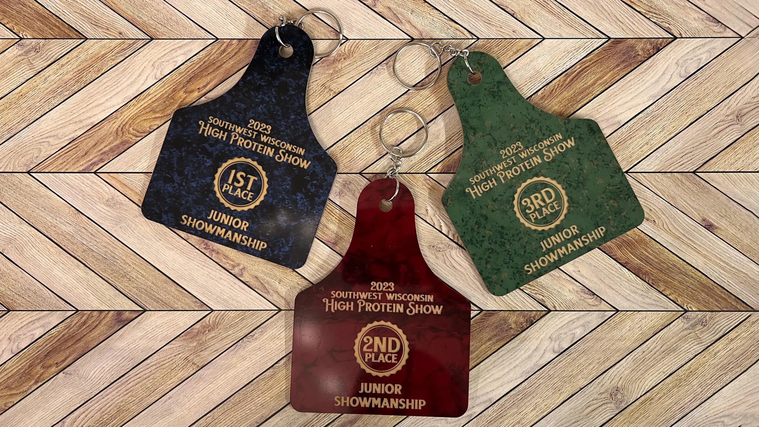 We love these ear tag keychains, and we know you will too! Our tags are laser-cut from two-tone Flexi-Plastic, which means the engraving will never rub off or smudge away! They’re great for more than just keychains – have them engraved with your farm name and attach them to your halters or wash buckets to keep them from ‘growing legs’ at the county fair, or attach them to your halters and have them engraved with class or animal names to keep your halters in order! The possibilities are endless – we’re sure you’ll find a hundred ways to love them!