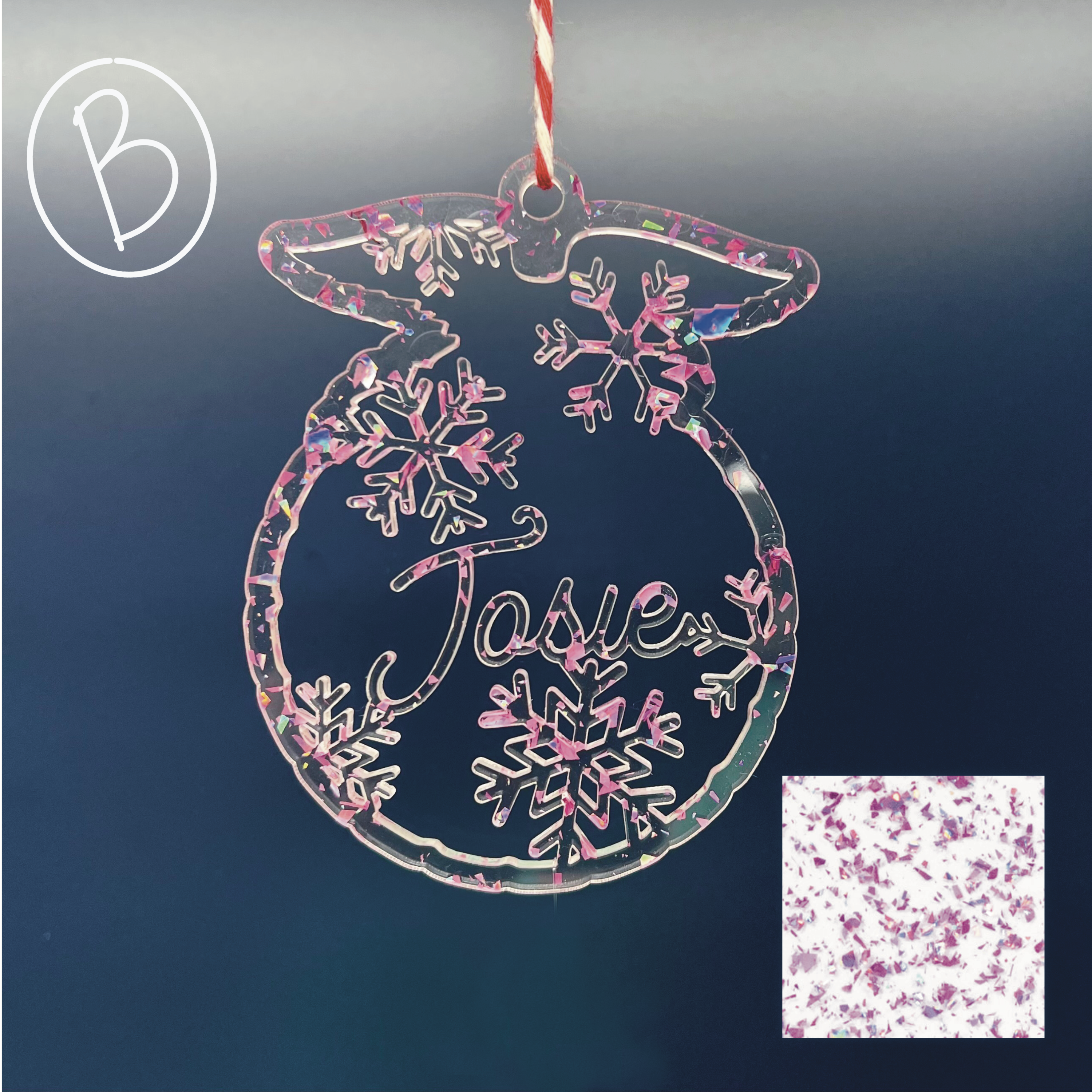 For this Christmas, we’ve decided to add some glitter to our decor! Choose from five glimmering, colorful acrylics to decorate your tree, or choose classic wood to complement any color scheme. Whichever option you choose, customization is included – so get an ornament for each of your favorite herd members, both in the barn and out. Available in dairy cow, sheep, long eared goat and short eared goat, horse, pig, and rooster!