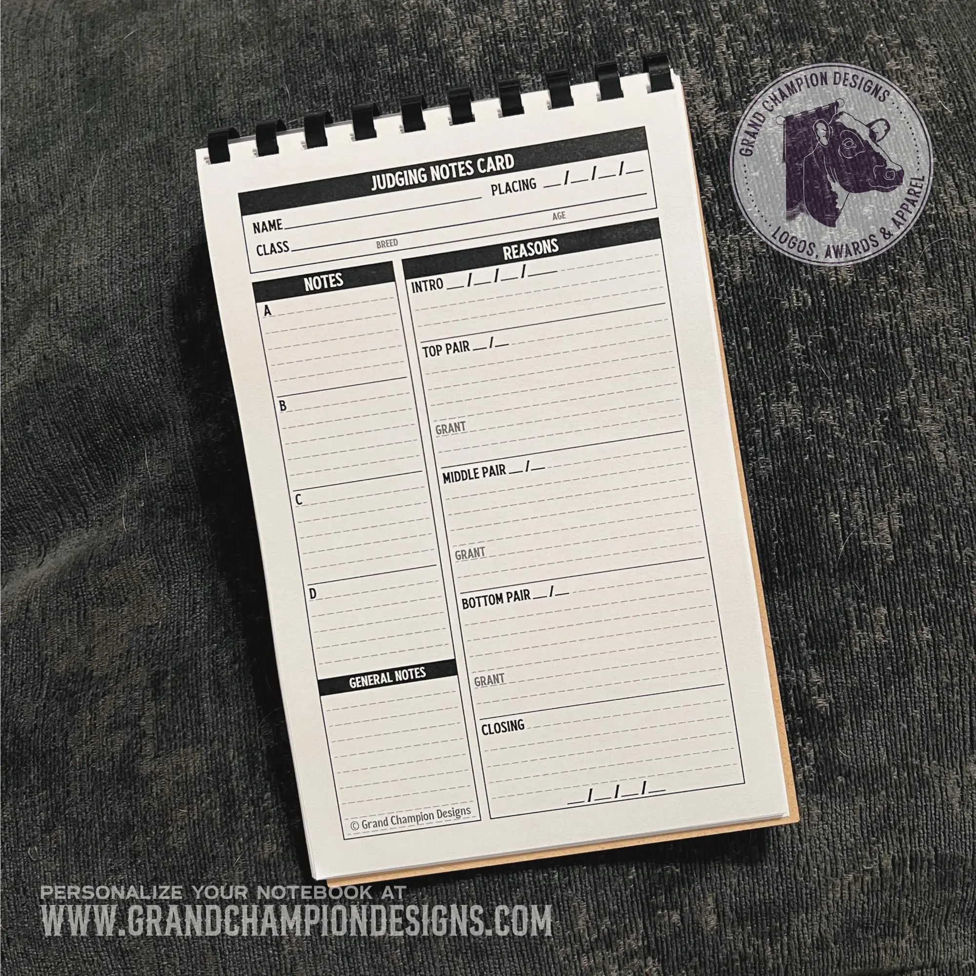 Keep track of your notes and reasons quickly and easily with these half-page top-bound notebooks. Each page is printed one-sided with easy to read pages and faint lines to keep your notes straight. Personalize the cover of your notebook with your name and species – no extra charge!