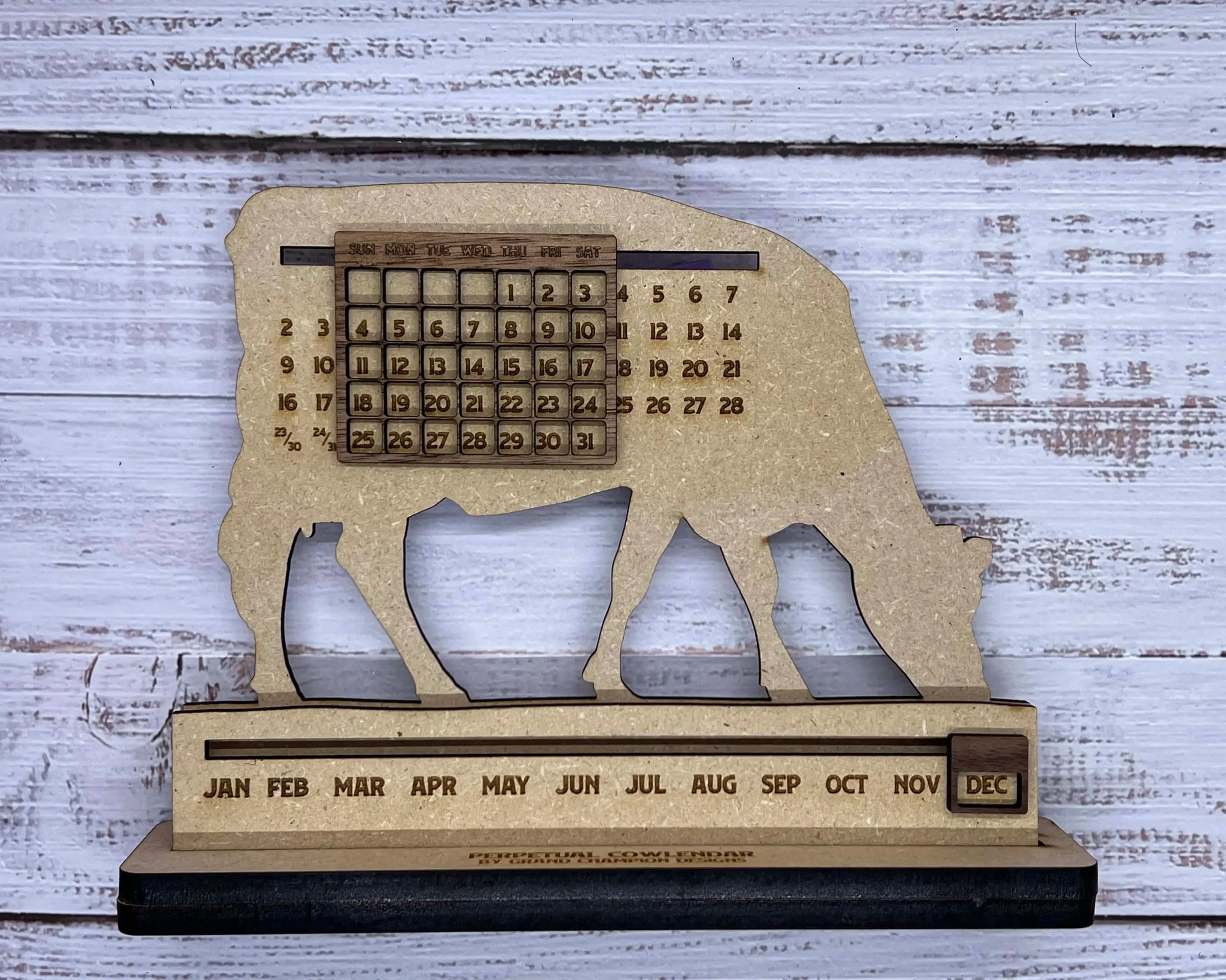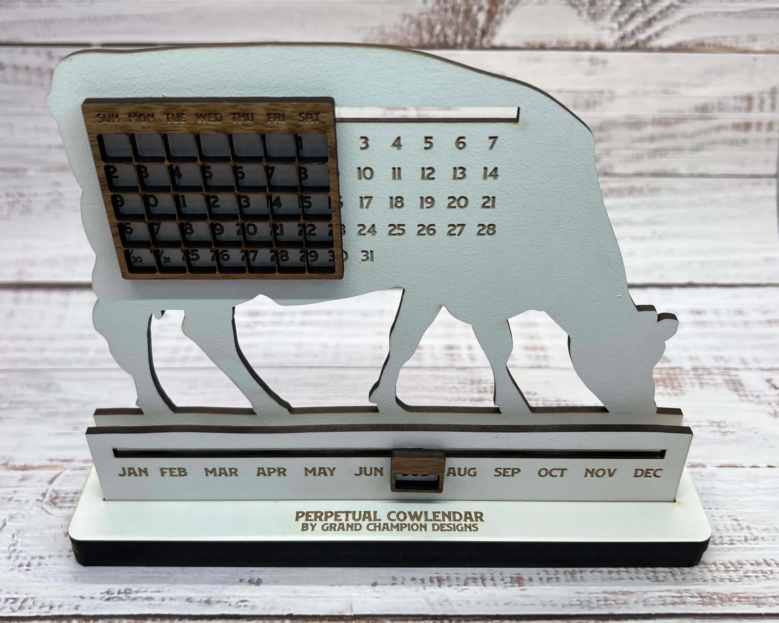 The perfect desk decoration for your home, office or milkhouse – this perpetual calendar is adjustable for every month of the year. Just slide the tickers down the line to the appropriate start date for the month and the calendar does the rest! Works for every year, so you’ll never have to worry about buying another desk calendar again.