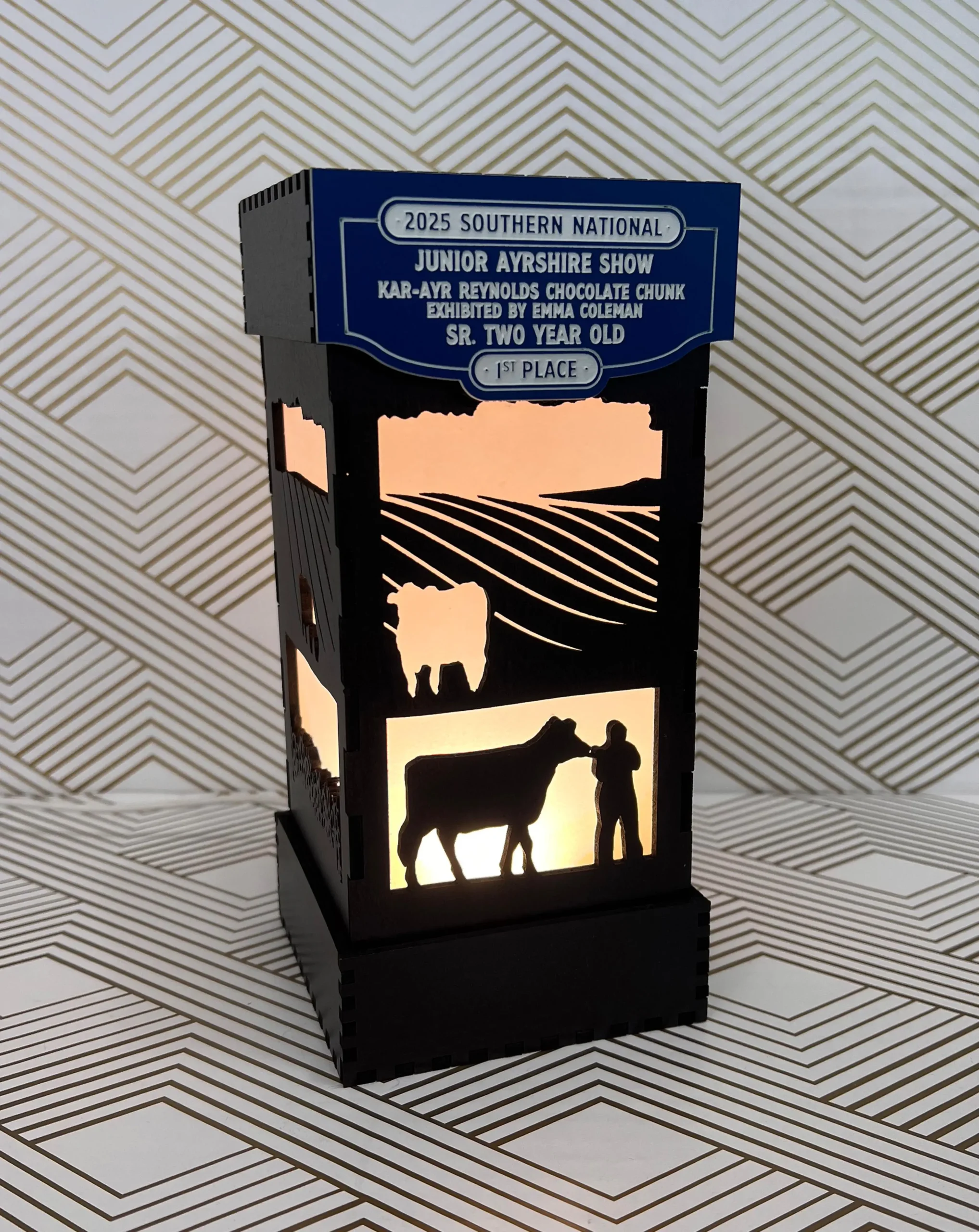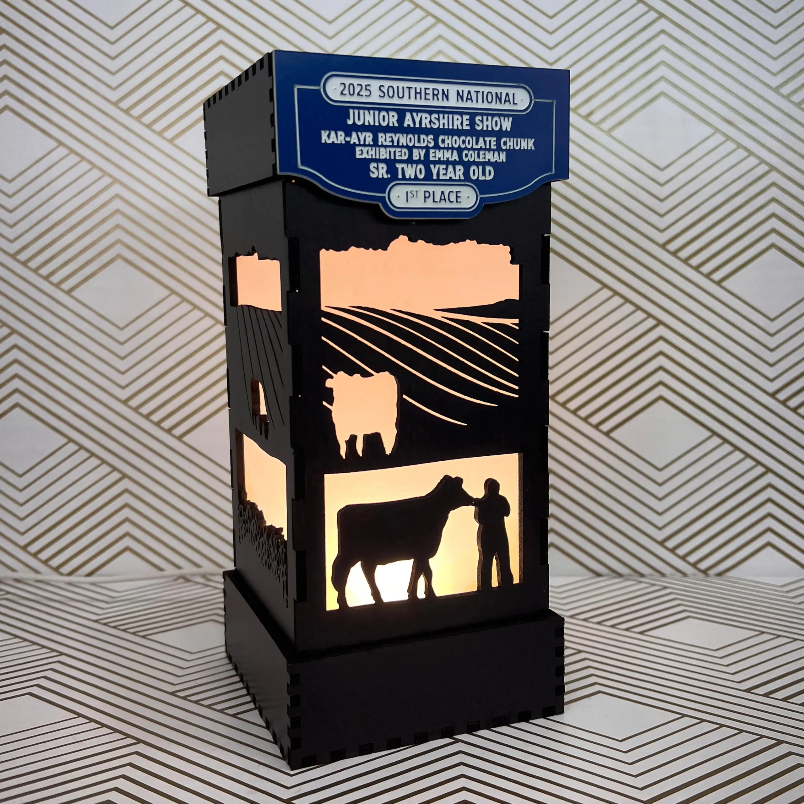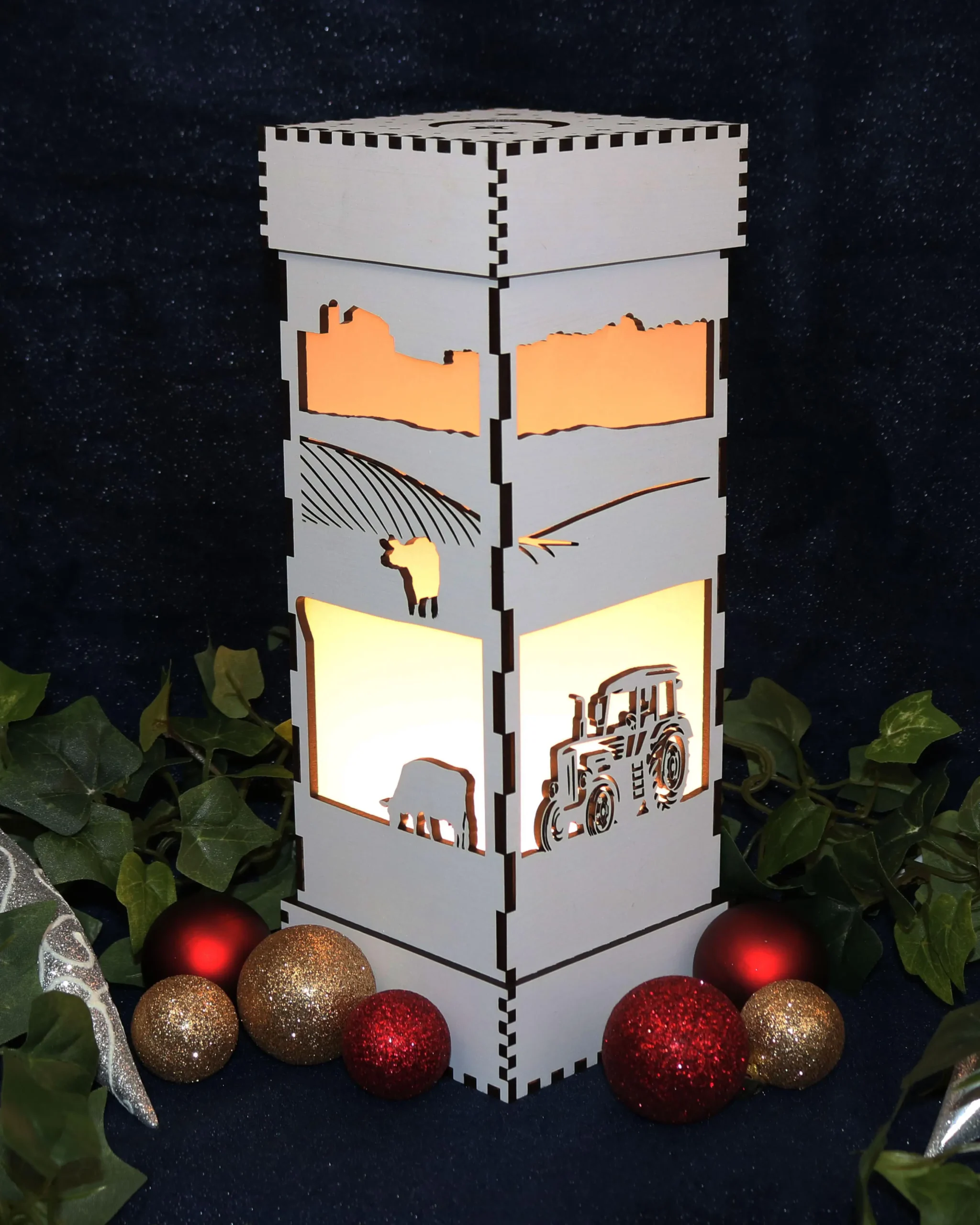 Add customization to the front of the nightlight top – an anniversary, birthdate, name or farm name to make this gorgeous nightlight an even more special gift.
