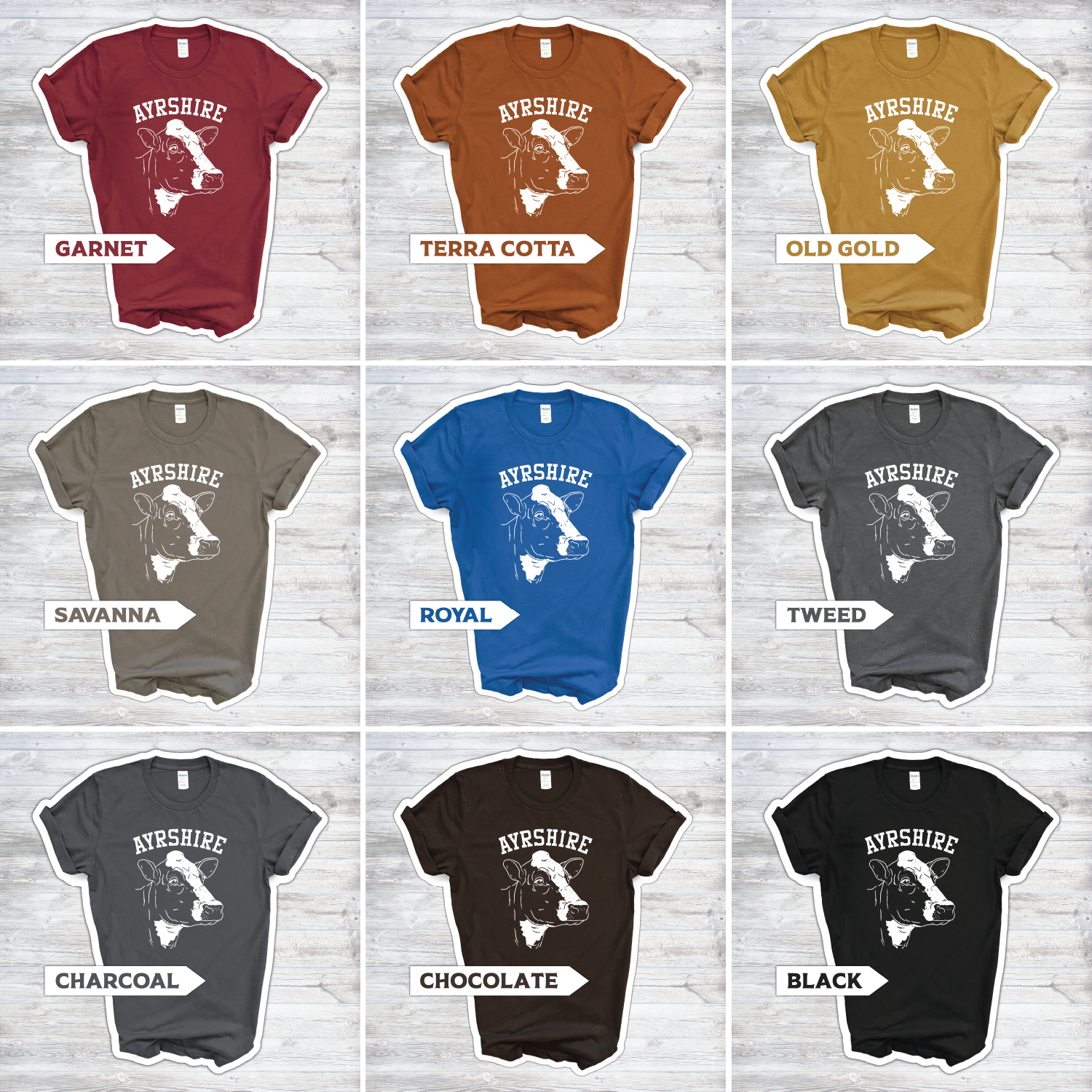 Embrace your love for your favorite dairy breed with our signature vintage designs. The bold and dynamic athletic block text shouts dedication, while the vintage-style cow head underneath adds a touch of timeless elegance. It’s more than just a shirt; it’s a statement of your commitment to excellence in the world of dairy farming. These shirts are comfortable and durable – perfect for the demands of farm life or a day at the show.